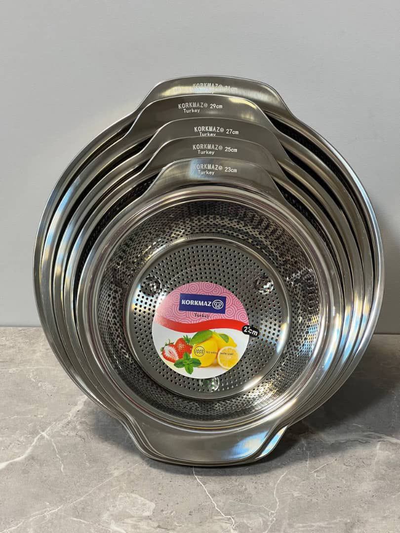 سرویس آبکش لگن ۱۰پارچه دسته دار کرکماز کیفیت عالی استیل آهنربا نگیر شامل ۵عدد آبکش و ۵عدد لگن سایز بندی ۲۳،۲۵،۲۷،۲۹،۳۱